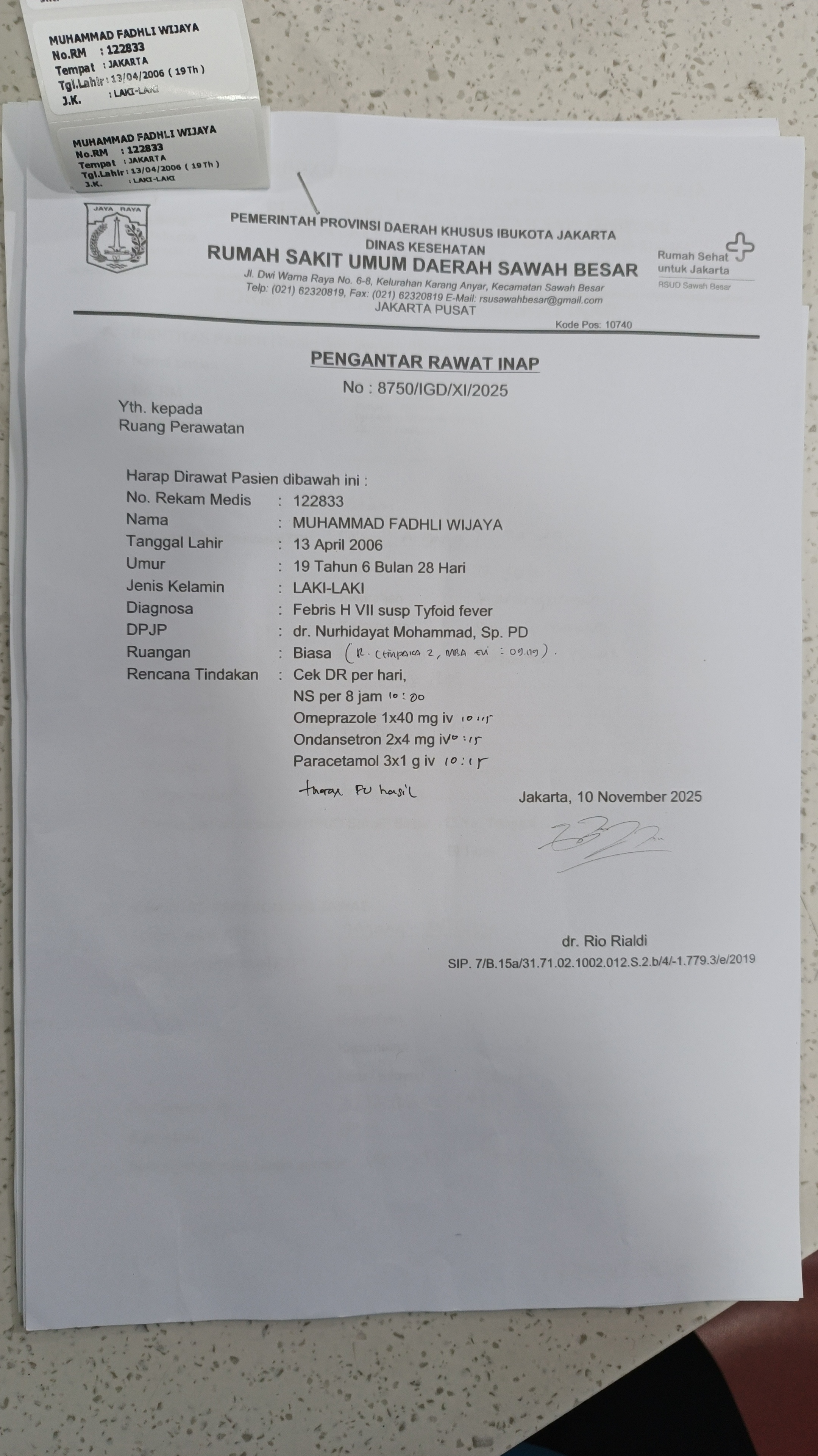 Re: Surat sakit / perawatan inap